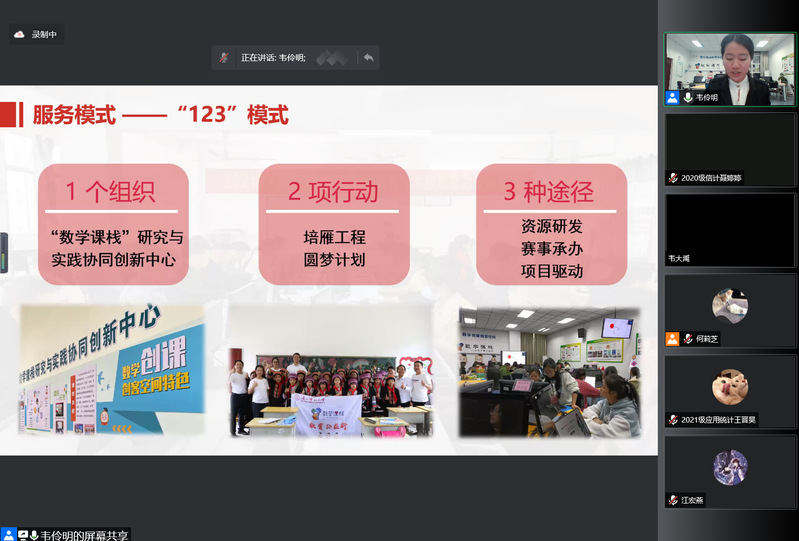 学院负责创新创业工作的指导老师详细介绍创新创业类学术科技竞赛的类别、参赛要求和我院近年来的竞赛成绩,重点介绍“互联网+”大学生创新创业大赛、大学生创新创业训练计划项目和“创新杯”大学生课外学术科技竞赛。第七届中国国际“互联网+”大学生创新创业大赛“数广集团杯”广西赛区选拔赛铜奖项目《数学课栈——赋能中西部乡村数学教育振兴》团队成员展示项目成果,并从“主动”、“行动”、“感动”三个方面分享参赛心得。
