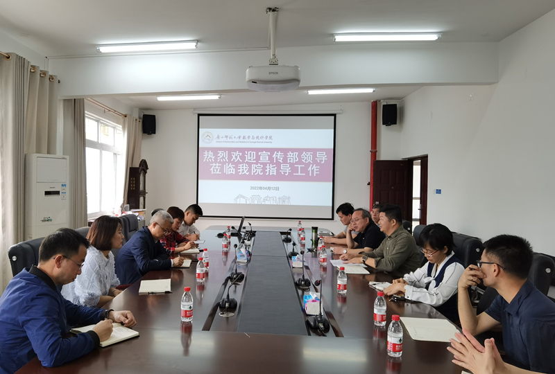 4月12日,校党委常委、宣传部部长汤志华一行到数学与统计学院调研学院宣传思想文化工作开展情况,数学与统计学院领导班子、教师代表参加调研会。