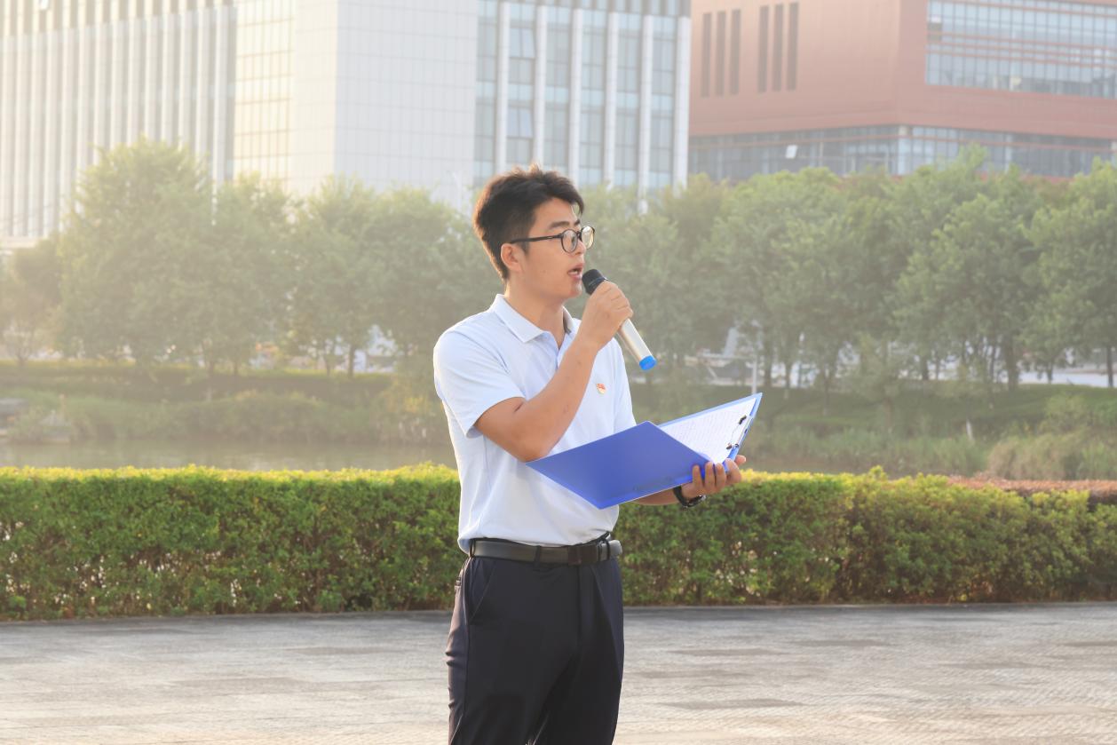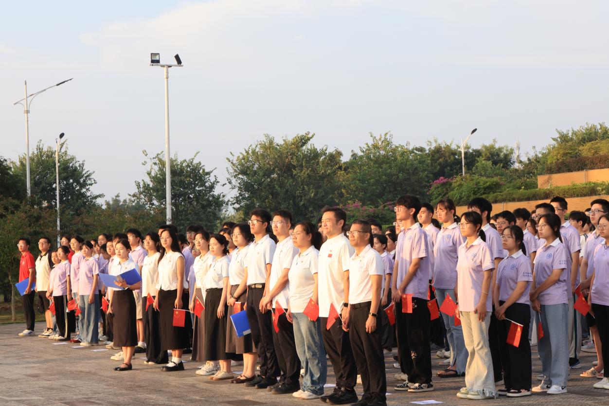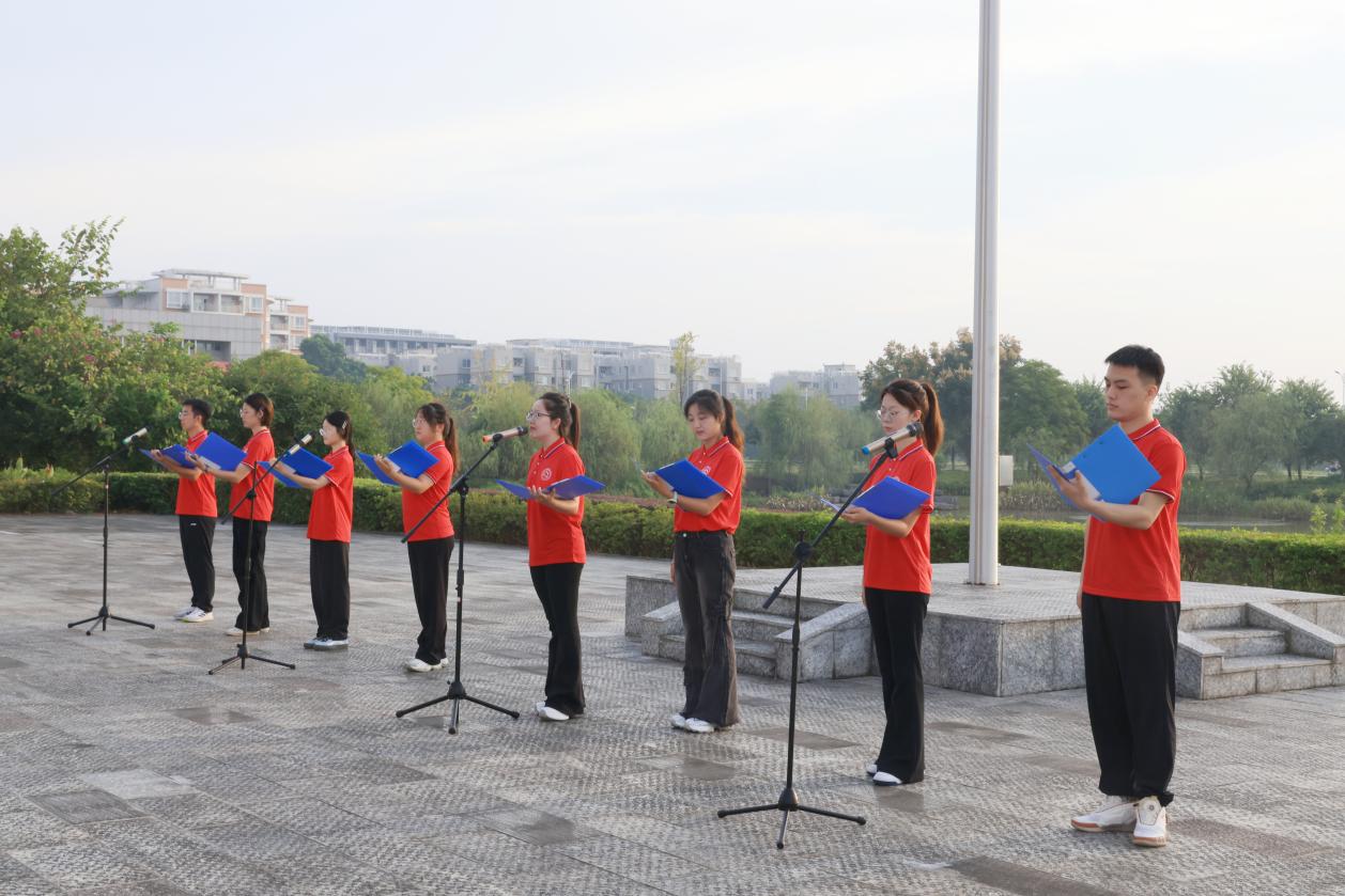 迎着清晨的第一缕阳光,在雄壮的国歌声中,五星红旗冉冉升起,祝福伟大的祖国繁荣昌盛。学院青年辅导员、学校曾派驻资源县金山村驻村第一书记高磊同志以《在信仰的引领下,奋斗在希望的田野上》为题,分享了他在驻村期间的所见、所感、所思,他倡议全体青年大学生把个人理想融入时代洪流中,在信仰的星光下,找准人生坐标,在自己选择的“田野”上奋力耕耘。来自各抗战热土的8名青年学生代表献上诗歌朗诵《山河不忘:来自故乡的抗战回响》,他们讲述了家乡的抗战故事,用青春的声音共同纪念中国人民抗日战争暨世界反法西斯战争胜利80周年。