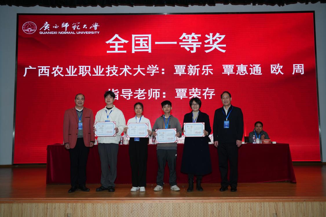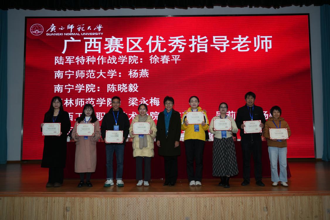 会上,为荣获全国一等奖的参赛队伍与指导老师、广西赛区优秀指导老师以及优秀组织学校、获奖学校颁发了奖项。获奖学生代表、广西师范大学黄威菁在会上分享了参赛体会与感悟。