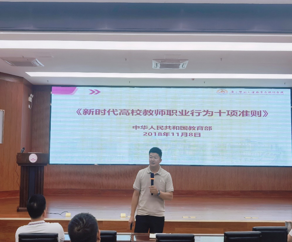 学院党委负责人开展师德师风案例警示教育。他指出,近期教育系统通报的个别教师学术不端、师生关系失范、违规使用经费、在课堂或网络发表不当言论等案例,为我们敲响了警钟。他强调,全体教职工必须引以为戒、反躬自省,深入学习践行《新时代高校教师职业行为十项准则》,时刻绷紧政治纪律和政治规矩这根弦,筑牢思想防线,严格遵守师德师风。(文/吴桂源、班宁,图/唐织辉,一审/梁婵娟,二审/班宁,三审/陆锋)