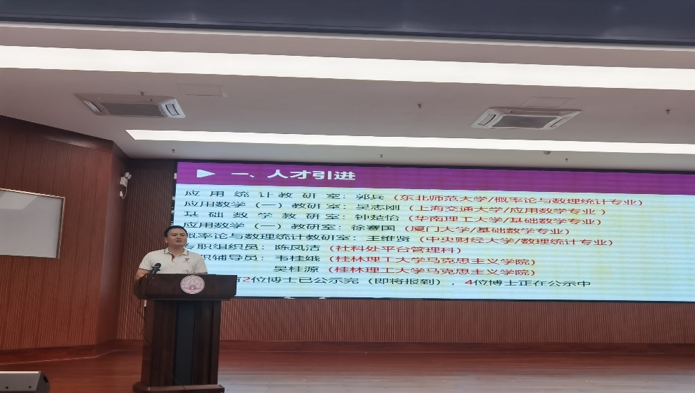 7月4日下午,数学与统计学院在育才校区国教中心2号楼201会议室召开春季学期期末教职工大会暨师德师风警示教育会。校党委常委、副书记黄文韬作专题辅导报告。学院领导班子、全体教职工参加大会。会议由学院党委负责人主持。